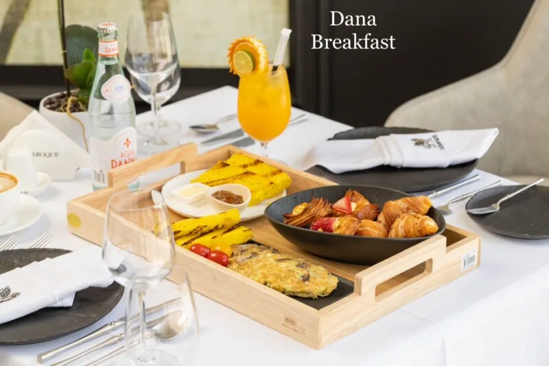 اختيارك من القهوة او الشاي مع افضل الكرواسان المحضر يوميا بالإضافة الى عصير برتقال طازج مع اختيارك من البيض او الاومليت مع سلك الخبز المصنوع منزليا ، زبدة ، مربى ومياه معدنية. | Your choice of coffee or tea served with freshly baked croissant basket along with Your choice of egg or omelette and a basket of fresh bread, fresh orange juice, butter, jam and water
